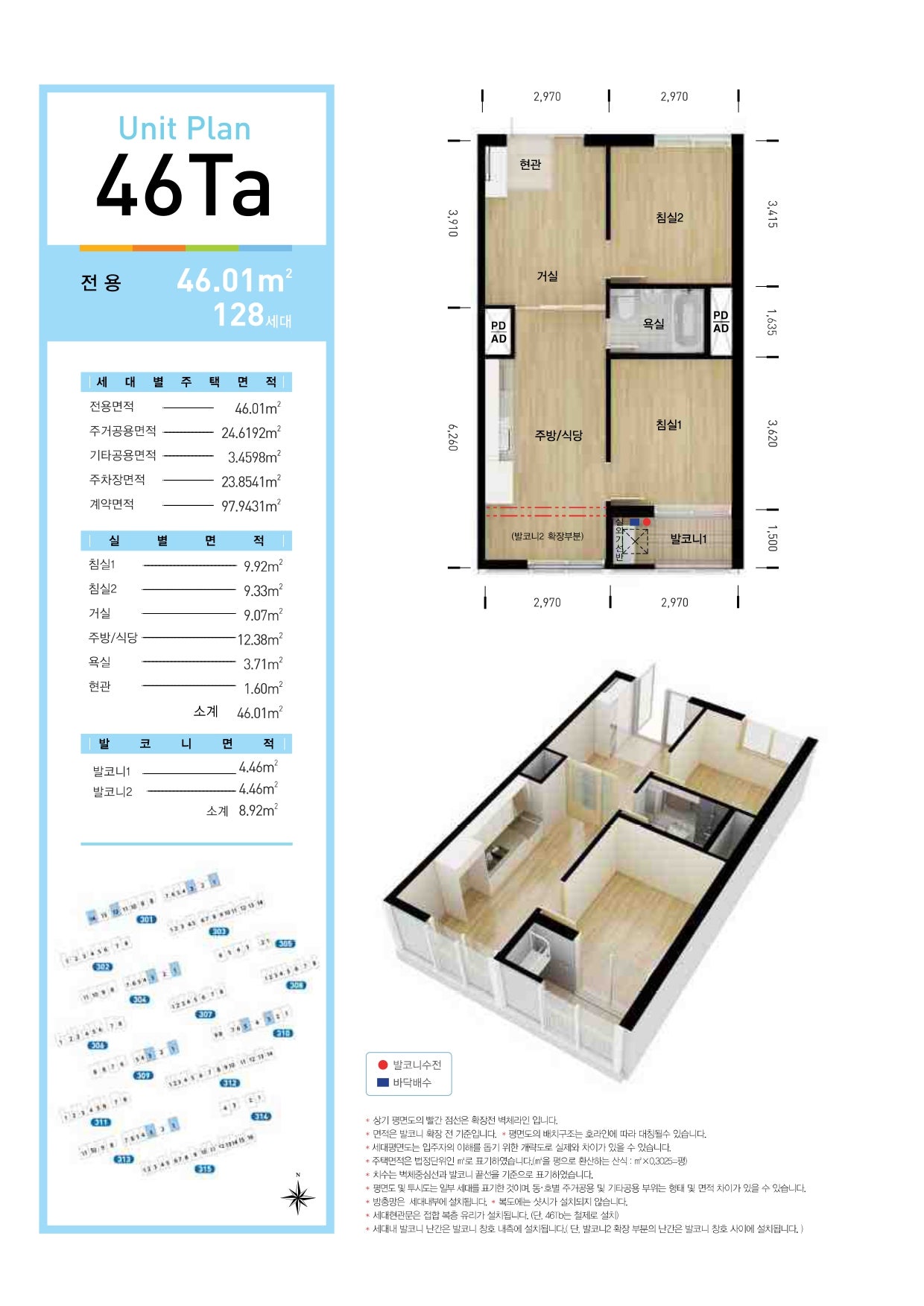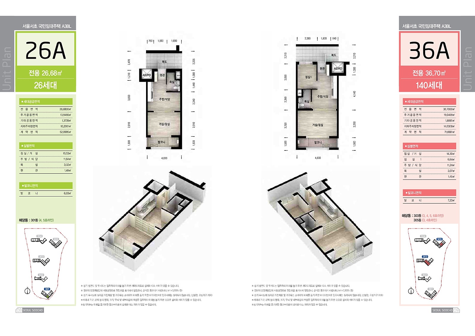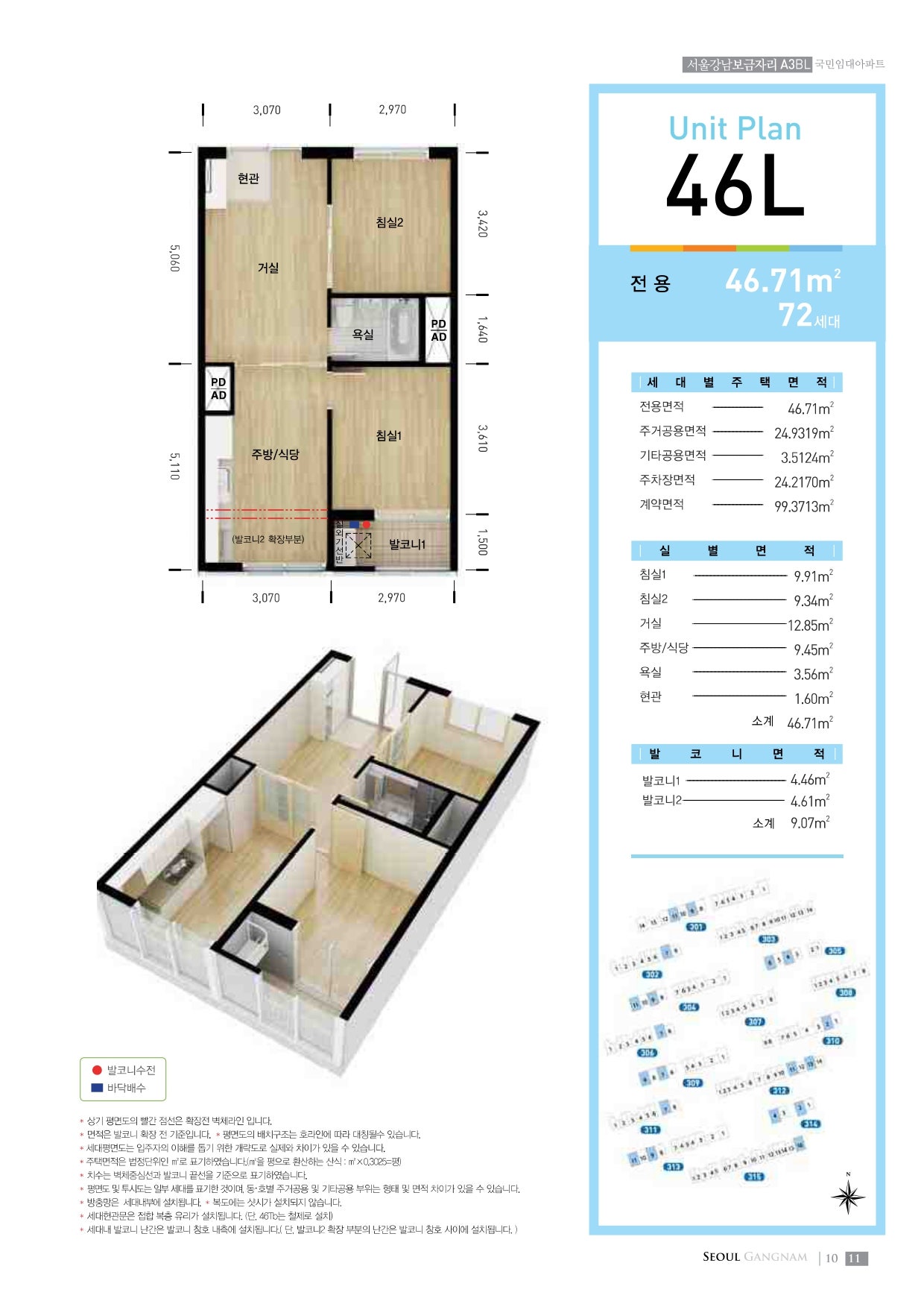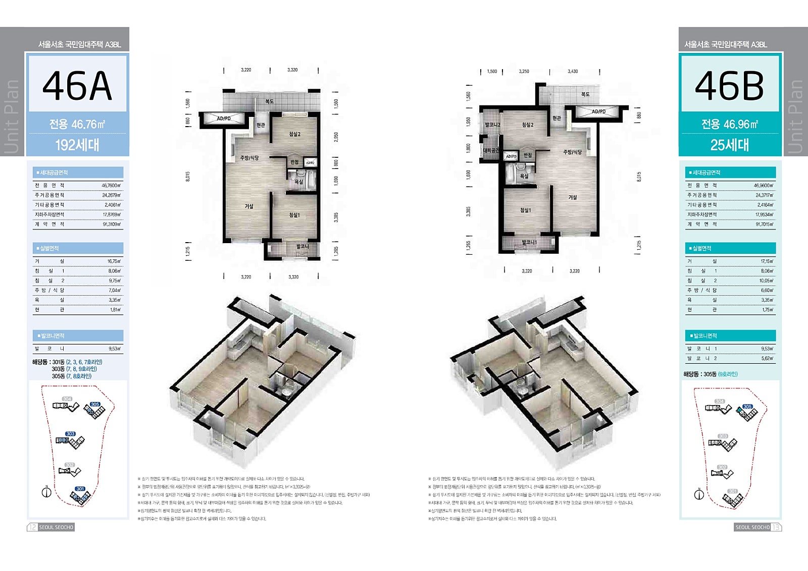 - 46형 (약 17평): 방 2개, 욕실 1개, 일부 철제 현관문 적용 - 임대 조건
