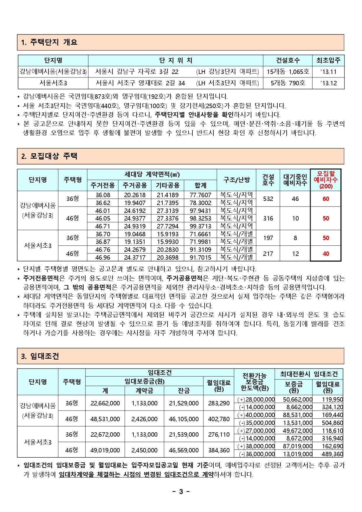 - 서초구 우면동: 서초 3단지 - 모집 대상 및 공급 평형