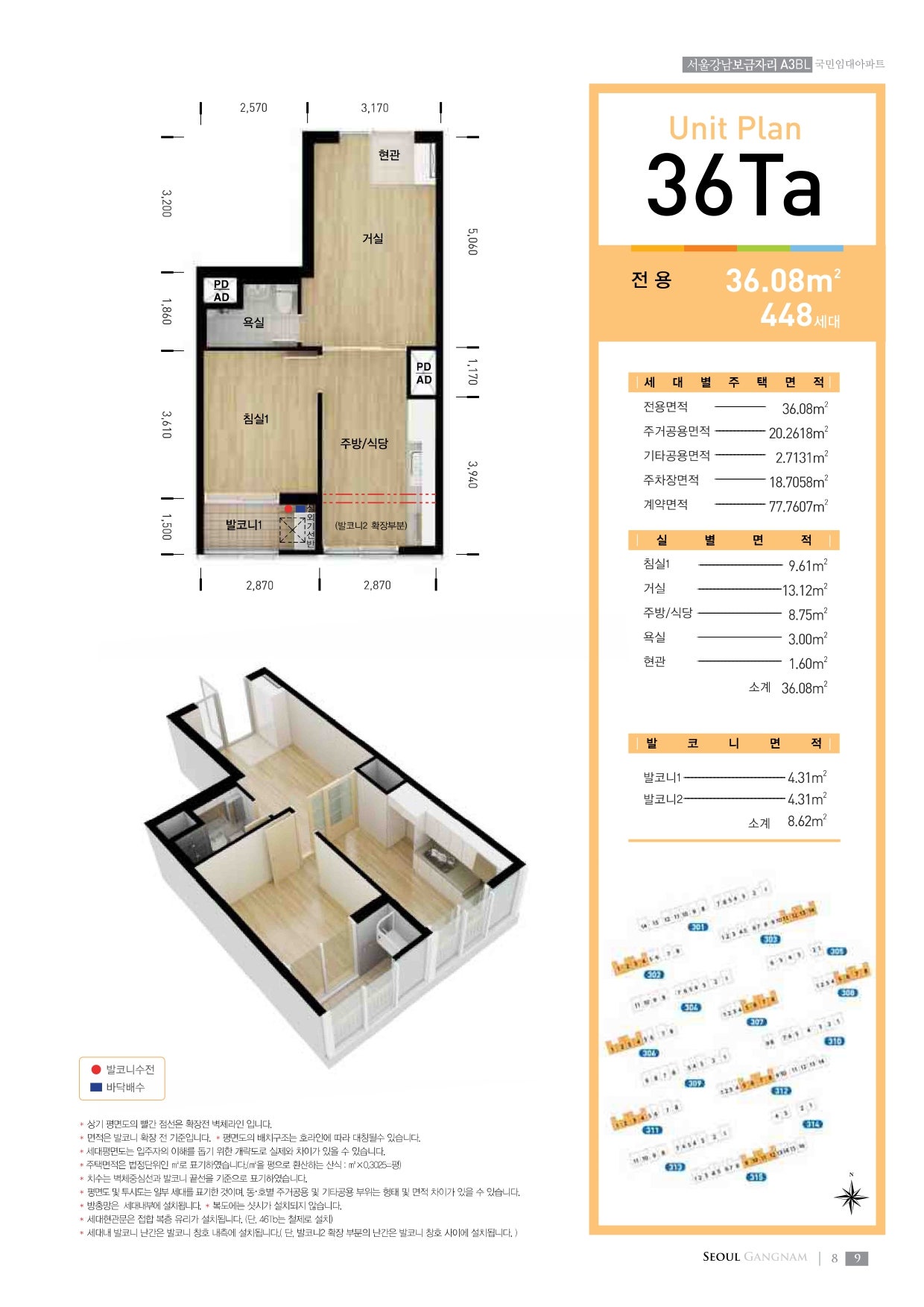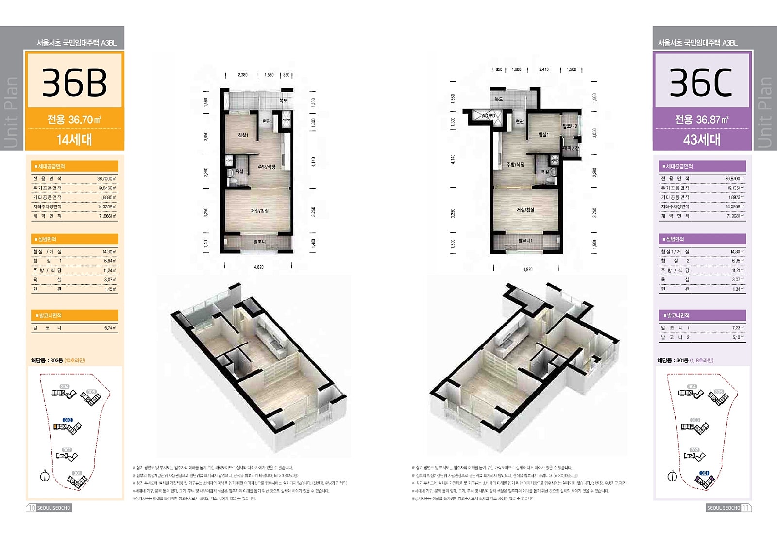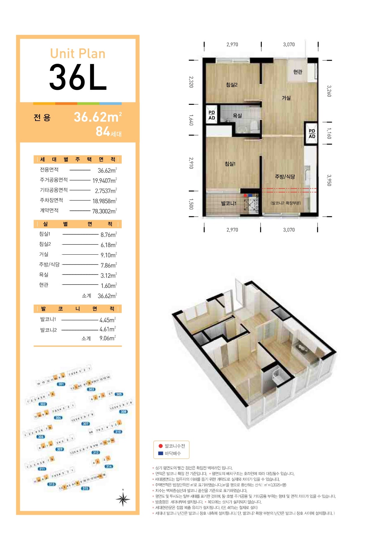 - 36형 (약 13평): 방 2개, 욕실 1개, 발코니 포함