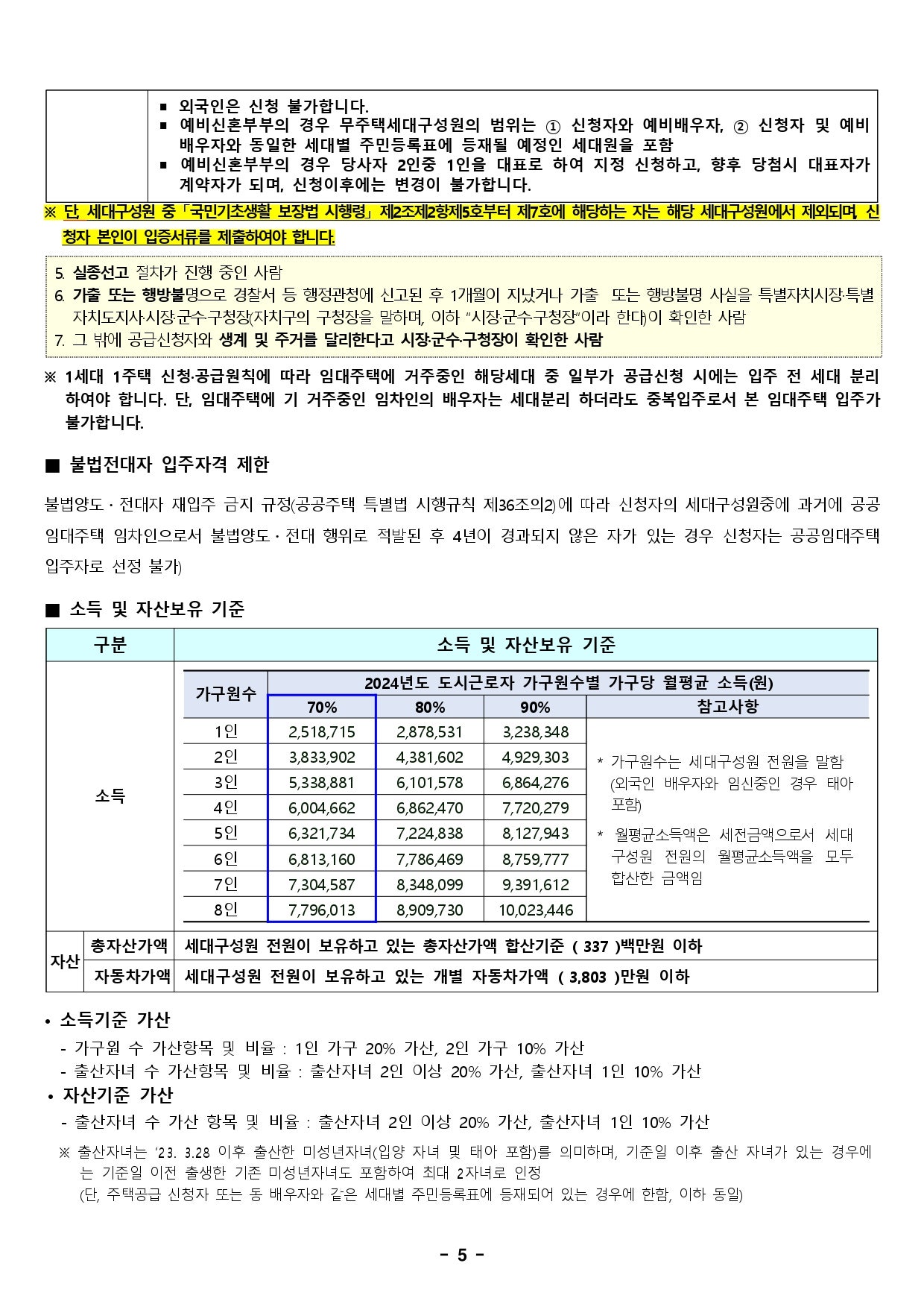 - 소득 기준 (도시근로자 월평균 소득 70%)